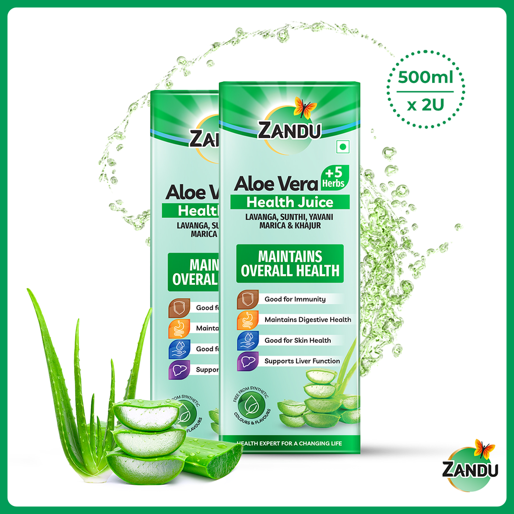 Zandu is introducing a range of healthy juices that not only helps you stay disease-free but is also tasty! Aloe Vera is an Ayurvedic herb known for its multiple health benefits. Zandu Aloe Vera + 5 Herbs Health Juice combines some of the best Ayurvedic herbs, such as Lavanga, Sunthi, Yavanai, Marica and Khajur along with Aloe Vera to bring you a juice that takes care your overall wellbeing. This juice improves immunity, supports digestive health and promotes good skin. Regular use enhances liver function, as well. These juices are natural and safe and do not contain added sugar, synthetic colours or flavours.
