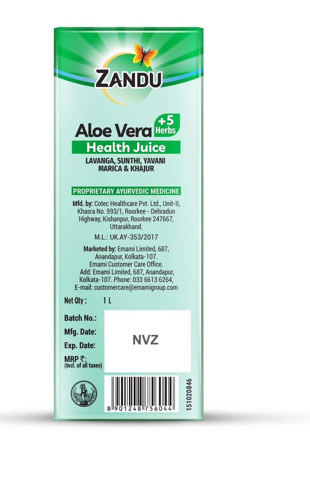 Zandu Aloe Vera + 5 Herbs Health Juice combines some of the best Ayurvedic herbs, such as Lavanga, Sunthi, Yavanai, Marica and Khajur along with Aloe Vera to bring you a juice that takes care your overall wellbeing. This juice improves immunity, supports digestive health and promotes good skin.