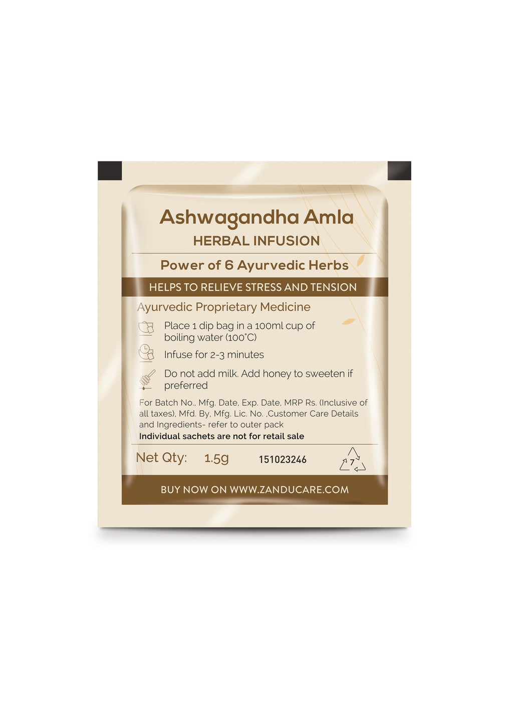 Are you looking for refreshing alternatives to Green tea? Zandu brings you Ashwagandha Amla Ayurvedic Infusion, an exquisite blend that has been specially prepared with zero bitterness and is free from preservatives to manage everyday health & wellness needs. This herbal tea contains 6 potent Ayurvedic herbs enriched with immunomodulatory, rejuvenating and adaptogenic properties, which aids in relieving everyday stress & anxiety. Ashwagandha helps reduce stress while enhancing strength & improving mental performance. Amla is a powerhouse of vitamin C (ascorbic acid) that prevents aging & boosts immunity. Unlike green tea, Zandu Ashwagandha Amla Ayurvedic Infusion helps improve brain functions, build stamina and promotes both physical & mental health. It’s about time to try this herbal tea and experience your tea-time with these purposeful, convenient and ready-to-use infusions. Replace your green tea with this caffeine free herbal tea and celebrate true wellness with zero compromise on taste!