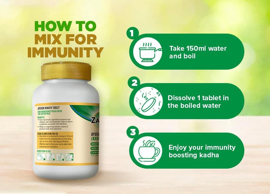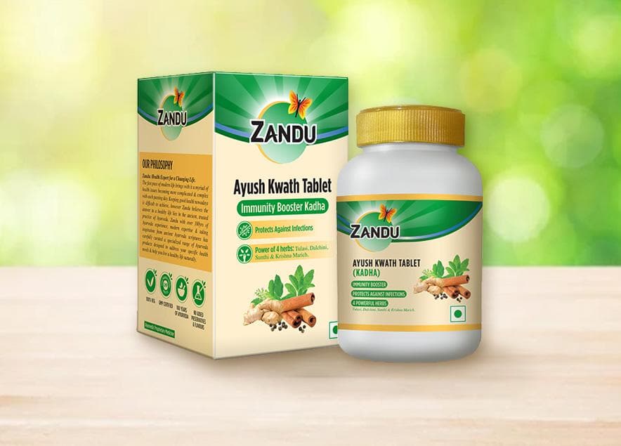 Introducing Zandu Ayush Kwath Tablet, a convenient and easy way to have kadha daily! Made using the powerful combination of four Ayurvedic herbs such as Tulsi, Dalchini, Sunthi, and Krishna Marich, Zandu Ayush Kwath (Kadha) Tablet effectively improves immunity. All the ingredients in this kadha possesses anti-allergic and antiviral properties, hence they help relieve symptoms associated with viral and bacterial infections.