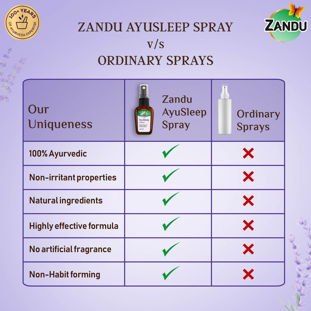 AyuSleep Spray an easy-to-use 100% natural and safe spray that combines natural ingredients such as Patchouli, Marjoram, Sandalwood and lavender fragrance. These ingredients used in combination can help to relax the nerves, calm the mind enough for an individual to feel the lull of sleep.