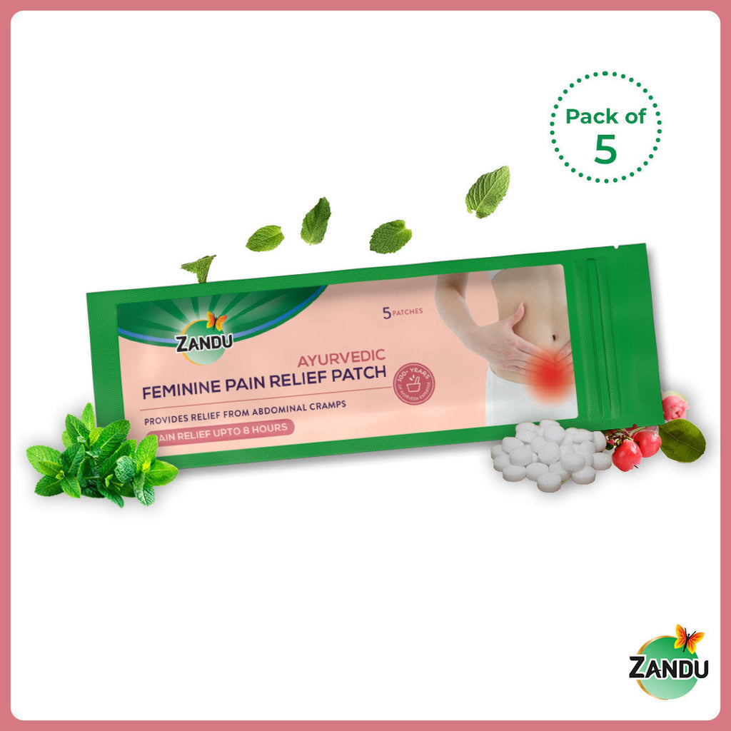 Today’s woman is multifaceted. She juggles different activities, plays diverse roles and carries many expectations. Her work mode is always on, and she has little time to rest, even during those long, difficult days. In such a scenario, every woman searches for a solution that can offer quick and effective pain and abdominal cramps relief. At Zandu, we understand this aspect of a woman’s life and have developed a perfect solution in the form of Zandu Ayurvedic Feminine Pain Relief Patch. This patch is specially designed to offer lasting relief without interrupting everyday activities. Prepared from the combination of Peppermint Satva, Shallaki Guggul (Boswellia Serrata) and Eucalyptus Oil, it provides relief from abdominal cramps by working directly on the affected area. Unlike painkillers, it bypasses the digestive system, thus, does not cause digestive issues and other side effects in the long term. It does not require re-application every few hours, which is needed while using topical medications like hot fomentation, sprays, creams or ointments, thus offering ease of use. These cramp relief patches contain no chemicals, parabens & sulphates and combine the virtues of Ayurveda with modern science to meet the holistic needs of consumers. Applying this patch takes seconds, and it delivers relief for up to 8 hours. So all the women out there, don’t let pain or cramps dampen your spirit. Use Zandu Ayurvedic Feminine Pain Relief Patch and live your life to the fullest!