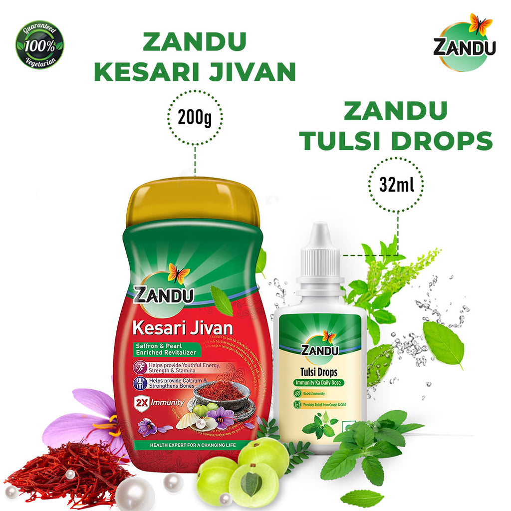 Zandu Kesari Jivan helps in boosting strength and stamina and keeps you energetic throughout the day. This revitalizer, enriched with saffron and pearl, provides you with a healthy dose of calcium thereby strengthening the bones. Regular use improves immunity.