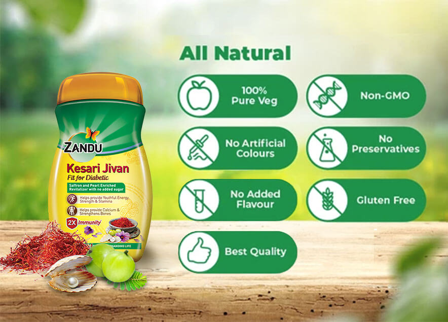 Zandu Kesari Jivan - Fit for Diabetic is specially formulated for those with high blood sugar levels. This daily revitalizer, enriched with saffron and pearl, helps to give youthful energy, strength and stamina. Regular use improves calcium levels in the body thereby strengthening the bones.