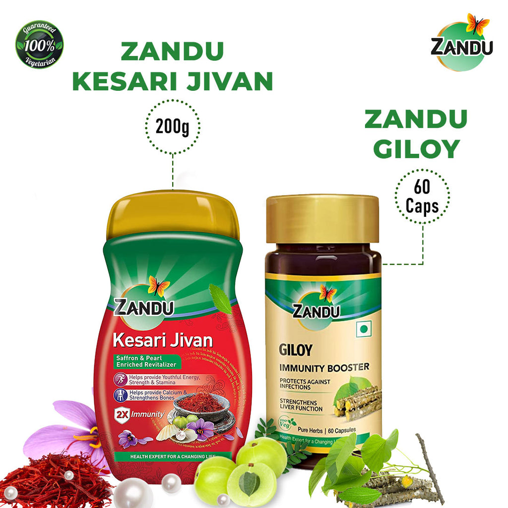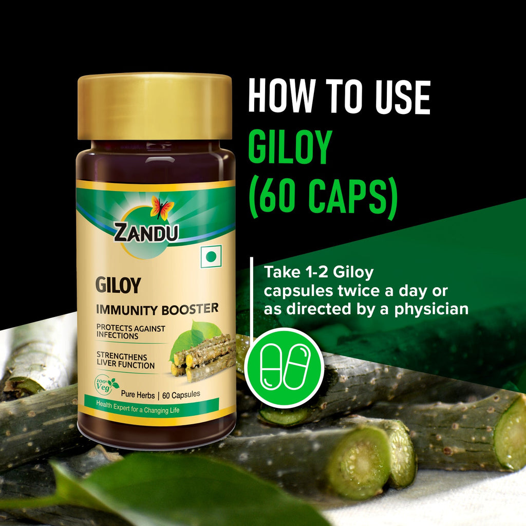 Zandu Guduchi (Giloy)Zandu Guduchi (Giloy) Pure Herbs is made using 100% pure extracts of the immunity-boosting Ayurvedic herb, Giloy with 2x Immunity. Giloy not only prevents infections but also reduces stress and anxiety. Regular use improves immunity and keeps you protected from diseases. Guduchi also supports liver health. *Scientifically Proven basis Laboratory N.K. Cell Activity