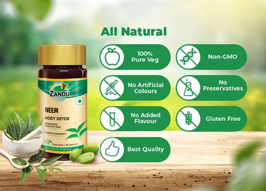 Zandu Neem Pure Herbs is formulated using 100% pure extracts of Neem leaves. Neem works as a mild antiseptic, hence, it effectively improves your skin and prevents skin infections such as acne and rashes. Neem also boosts metabolism thus supporting digestive health, the natural way.