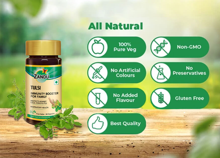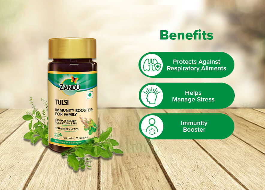 Zandu Tulsi Pure Herbs is made using 100% pure extracts of Tulsi leaves. It is an Ayurvedic supplement for improving respiratory health. Tulasi works as an immunity booster and helps protect you from influenza viruses and also common cold and cough. A natural stress-buster Tulasi helps you to stay calm in a natural way.