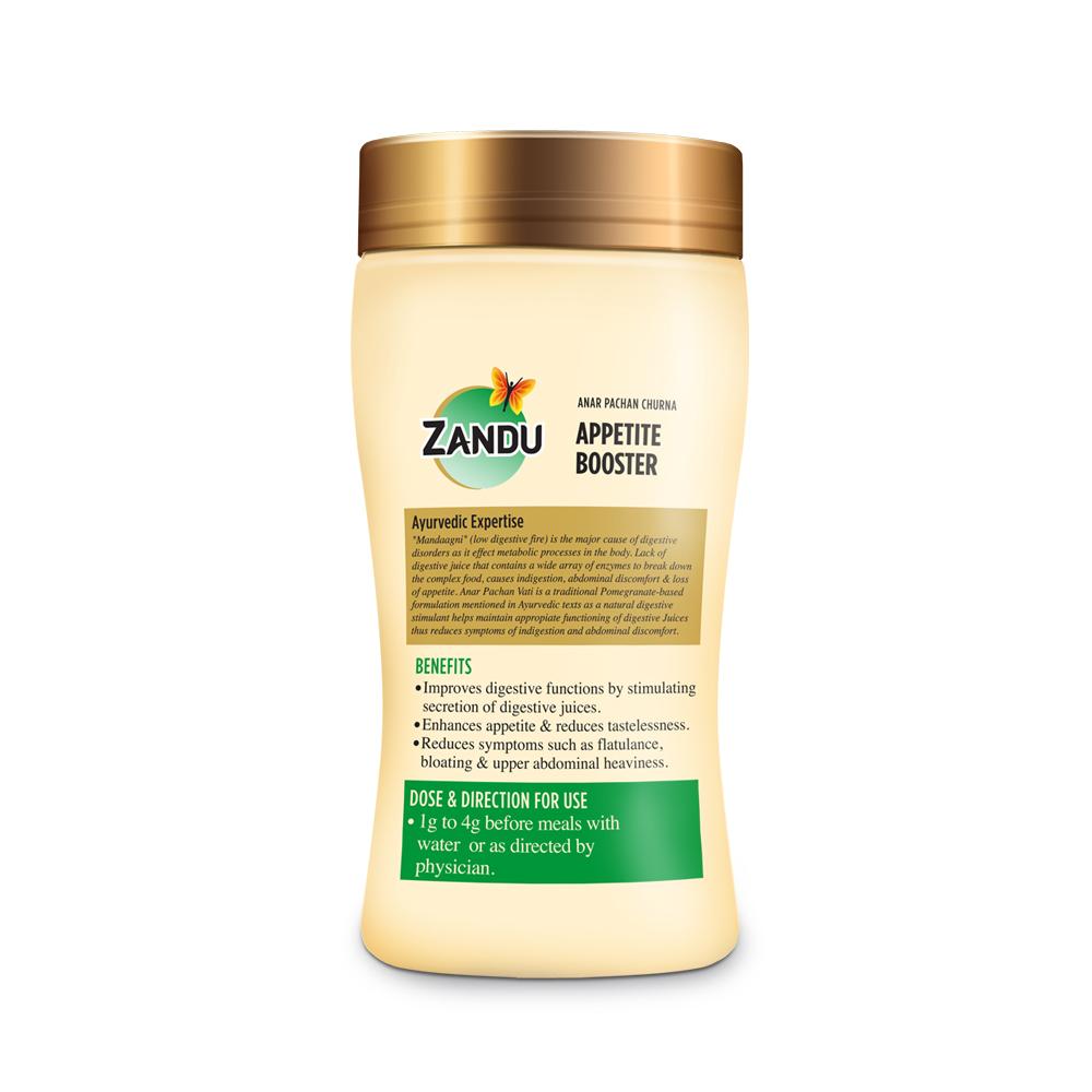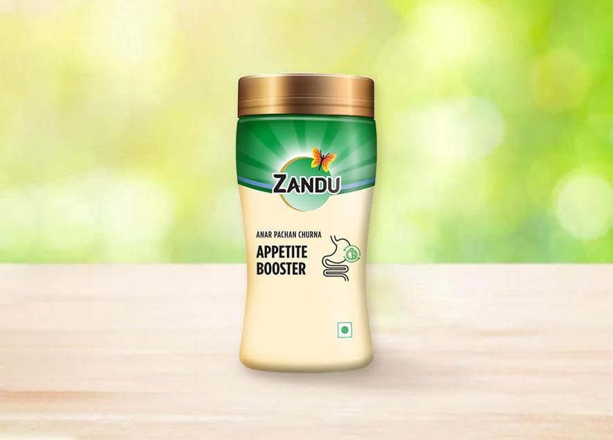 Is salt intake in your diet affecting health? Zandu Anarpachan Churna is an Ayurvedic appetite stimulant medicine enriched with the goodness of 5 herbs- Sunthi, Guduchi, Gokshura, Amlaki & Dadim that helps provide relief from digestion related issues like loss of appetite, hyperacidity, tastelessness, bloating etc. This appetite stimulant has low salt content which makes it an ideal choice for guarding against lifestyle challenges. The herbs present in Zandu Anarpachan Churna helps in enhancing taste, promoting strength, increasing appetite and supporting digestion.