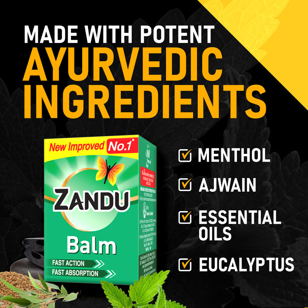 An iconic pain relief balm with more than 100 years of trust and expertise, Zandu Balm is the perfect solution for headache, body aches and cold. Known as India’s no.1 pain relief balm, this Ayurvedic salve provides instant and long-lasting relief from body pains of all kinds.