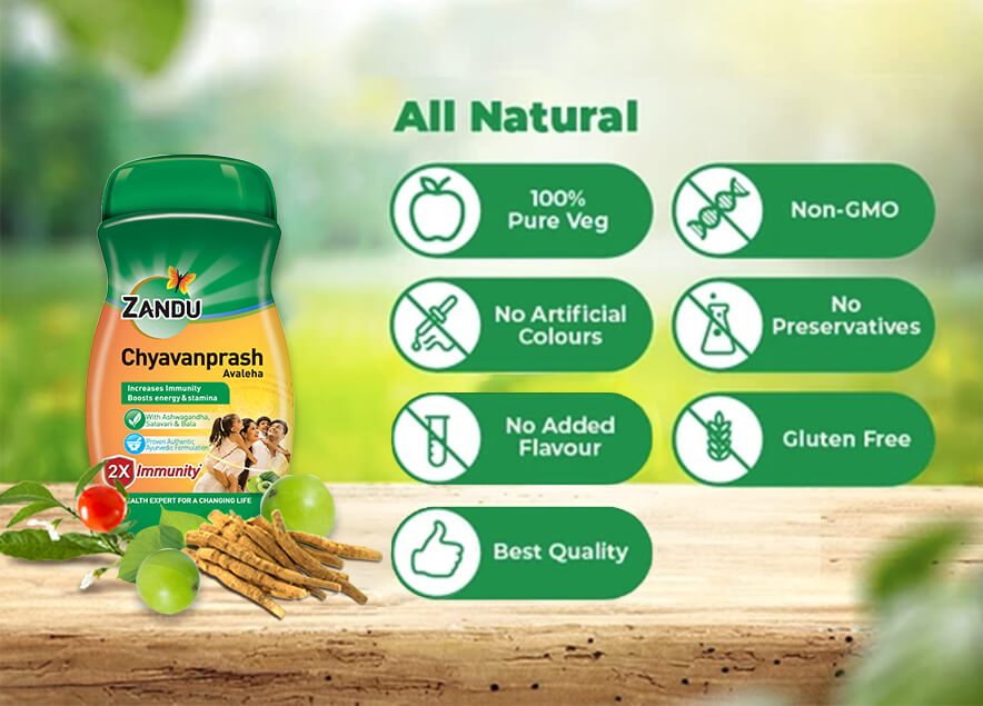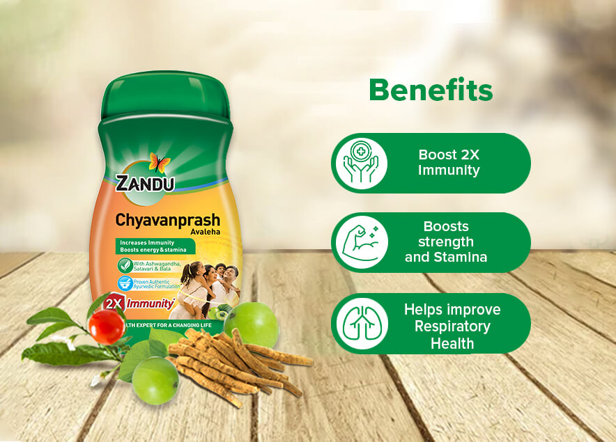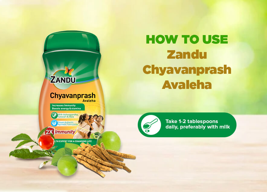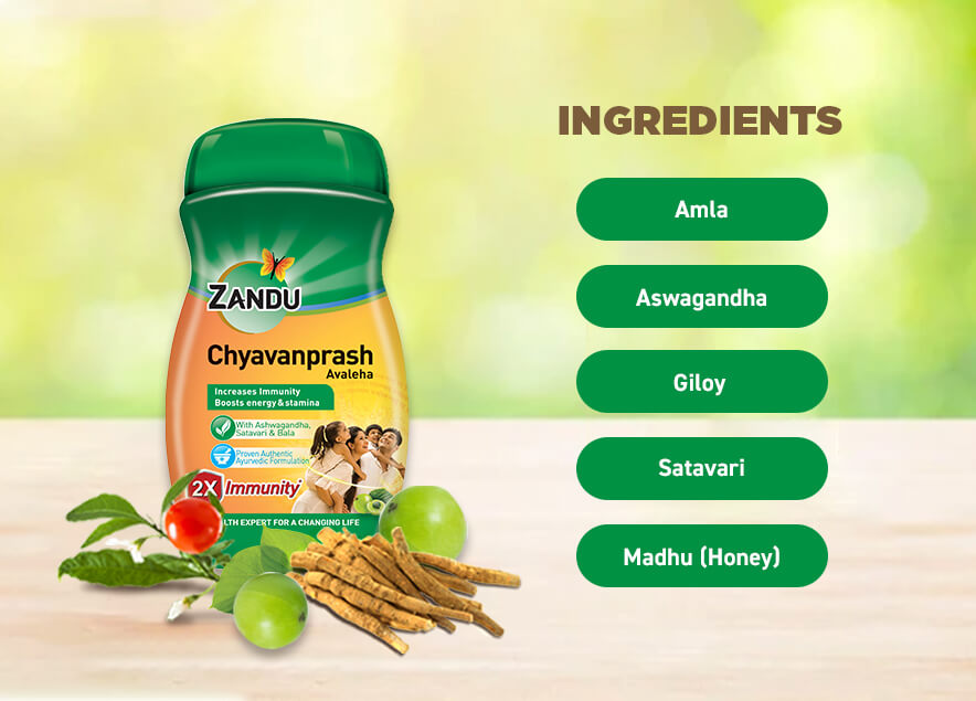 - Formulated using an authentic Ayurvedic recipe using potent herbal ingredients, such as Ashwagandha, Satavari and Bala, Zandu Chyavanprash Avaleha helps to boost your immune system. Regular use not only increases your stamina but also keeps you energetic and stress-free through the day.