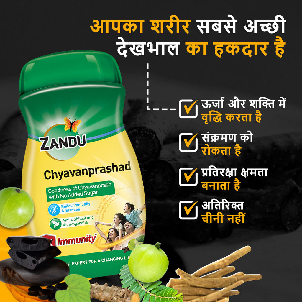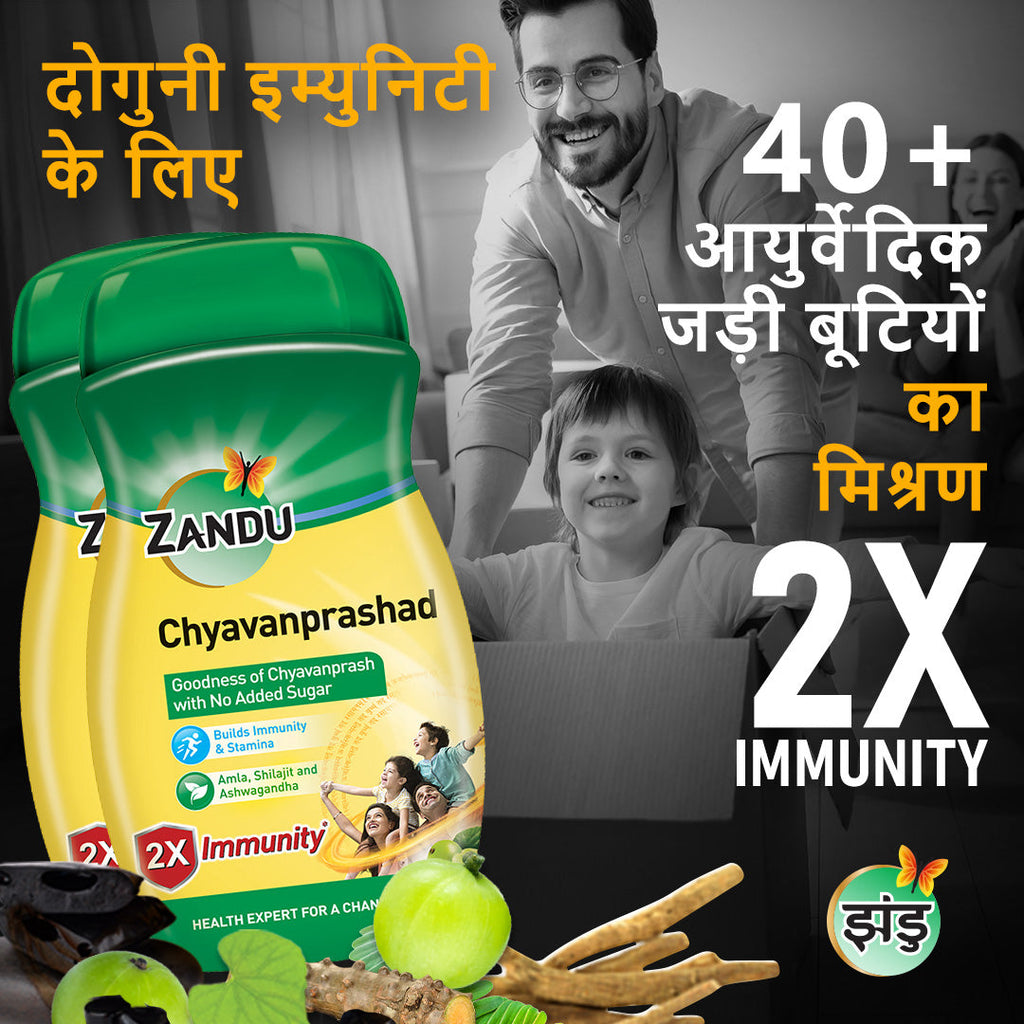 भीतरी और बाहरी तंत्र की सुरक्षा में बढ़ोतरी के लिए एकदम सही कॉम्बो! झंडू का चीनी रहित च्यवनप्राश (900 ग्राम x 2)
