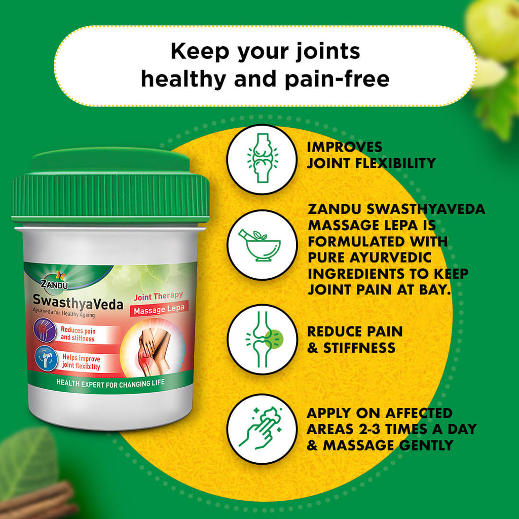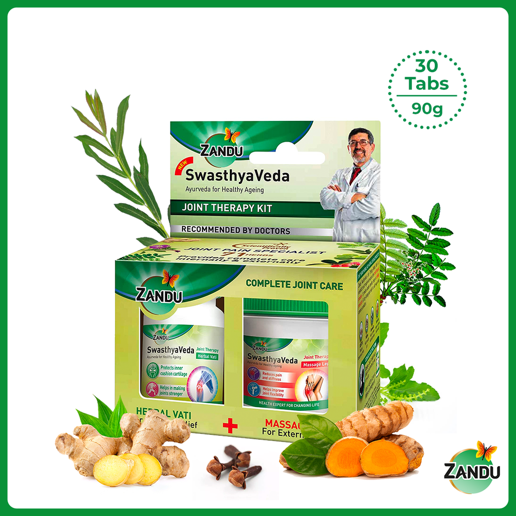 Introducing Zandu Swasthyaveda Joint Therapy Kit, the perfect way to give your joints the complete care they deserve. Recommended by experts, this kit contains products that are to be used internally as well as externally to keep your joints healthy and pain-free. This Ayurvedic kit is specially designed to help you in the healthy ageing process.