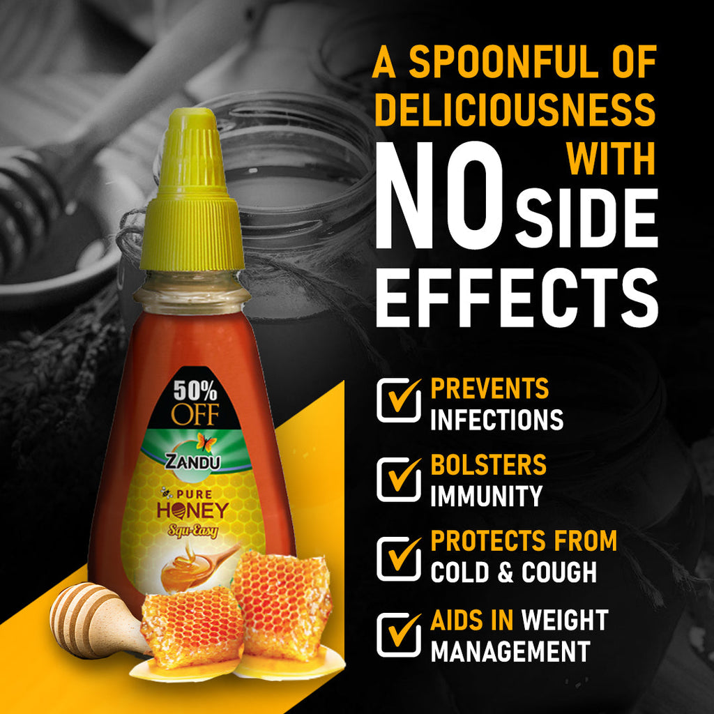 Zandu Honey is packed with antioxidants, enzymes, and essential minerals that boost immunity and combat infections along with a bouquet of nutritional benefits. It is known to help in weight management as it can be consumed daily like a healthier substitute for sugar.