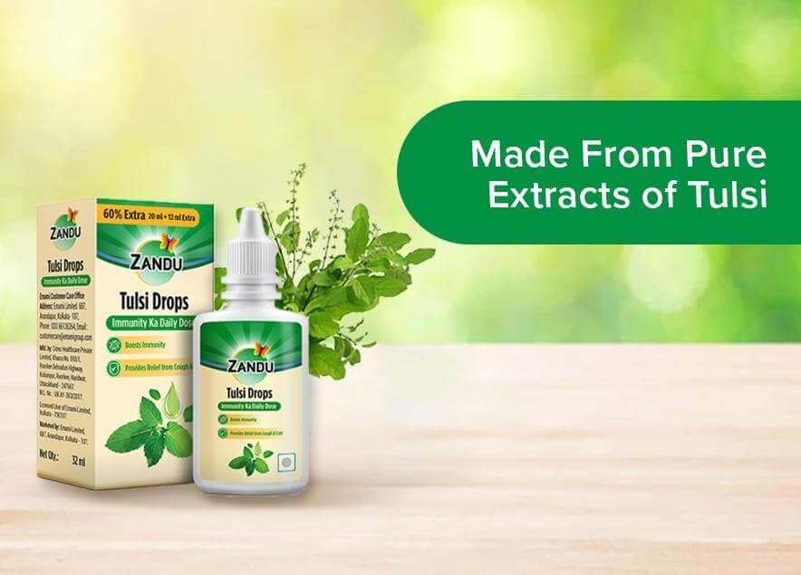 Tulsi have immunomodulatory, antiviral, hepatoprotective, antioxidant and anti-stress properties. ...Zandu Tulsi Drops is a unique formulation made from selected species of Tulsi. Regular use helps prevent infections, maintains healthy respiratory function, relieves cough and cold while providing 2X immunity*. Tulsi drops also supports liver and digestive health thereby promoting overall health and well-being.