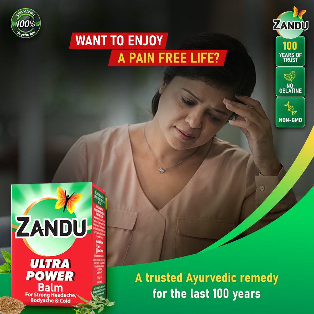 A trusted Ayurvedic remedy for the last 100 years, we present to you the new Zandu Balm Ultra Power, with its new and improved formula that makes it even more effective in fighting headache, body ache and cold. It is designed to get absorbed quickly, work faster and provide better pain relief.