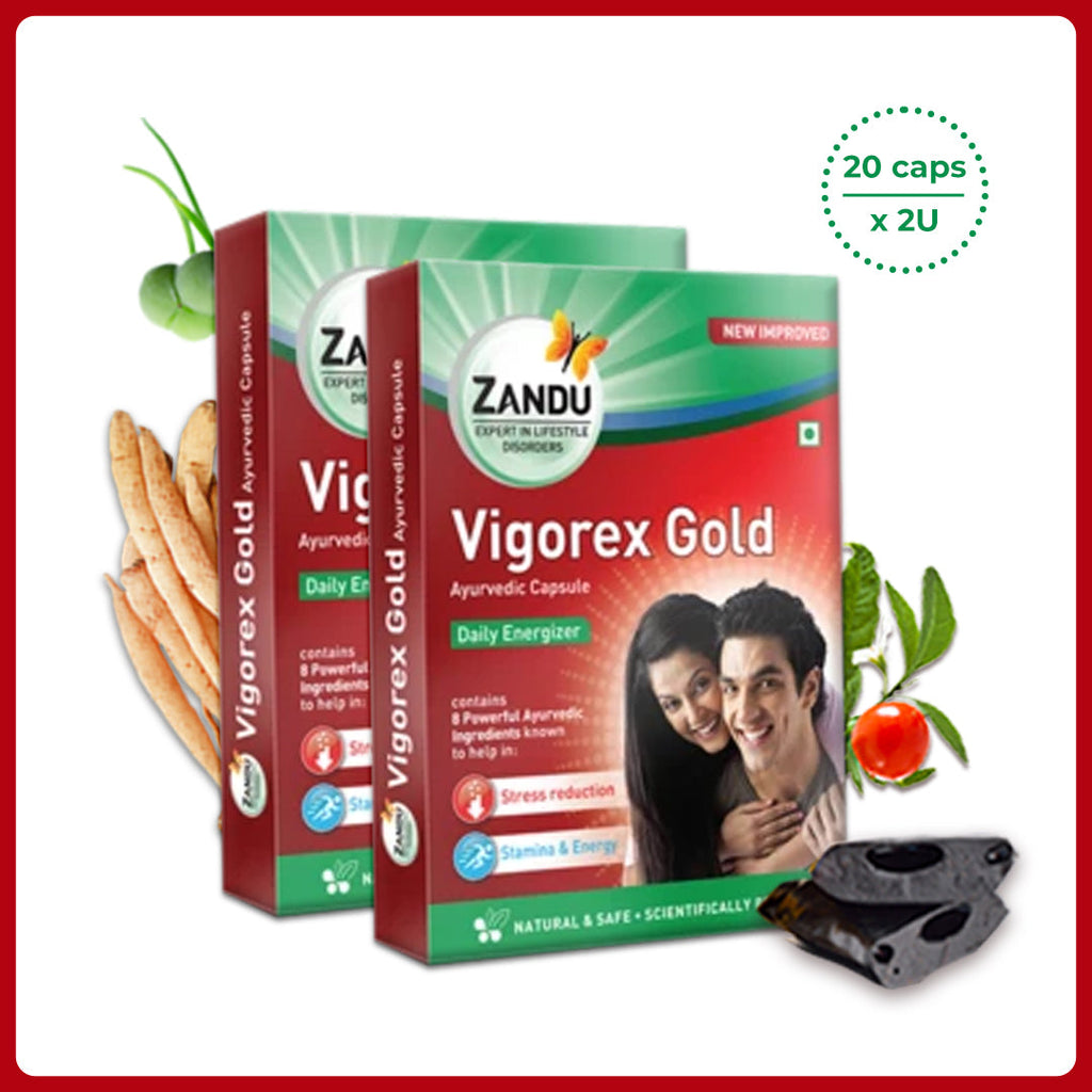 Zandu Vigorex Gold is a unique Ayurvedic revitalizer fortified with eight powerful Ayurvedic minerals and herbs, including Shilajit, Safed Musli and Ashwagandha. It helps relieve stress, gives you necessary power, boosts energy and thereby, helps you to enjoy your married life.